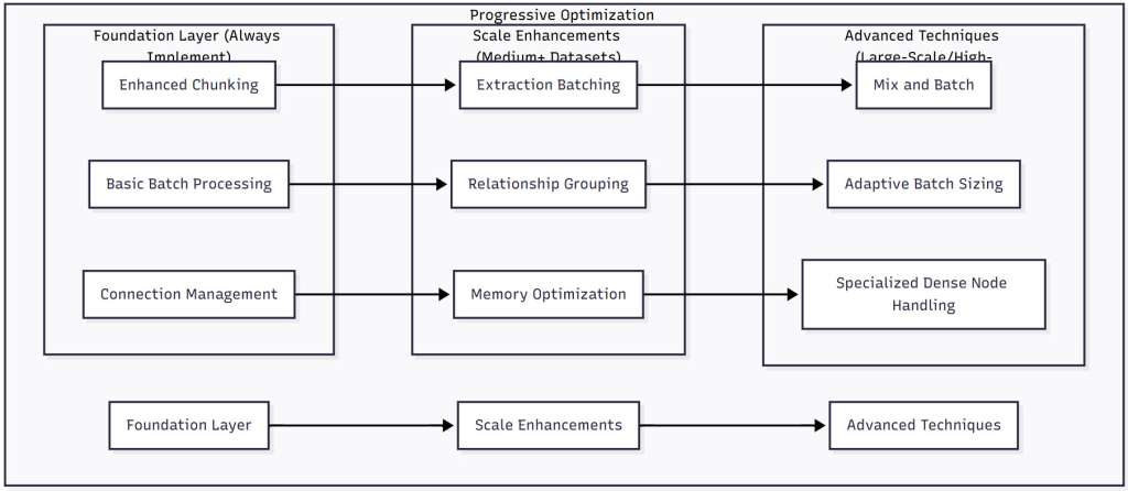 - Apply optimizations progressively—begin with foundation techniques like chunking and batching before moving to advanced strategies
